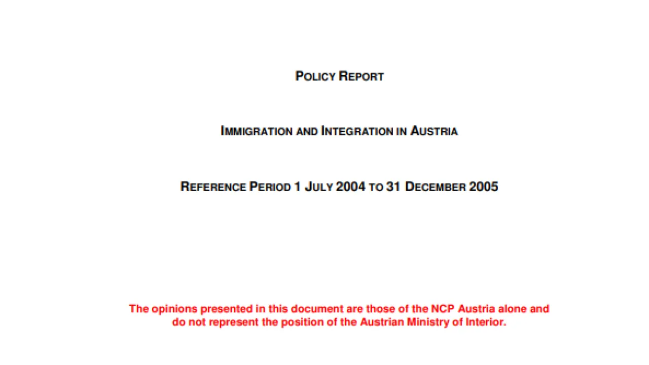 The Annual Policy Report 2005 provides an overview of migration and asylum-related developments and debates in Austria. Most dominant were the legislative development, i.e. the adoption of the Aliens’ Law Package, which enters into force on 1 January 2006. Furthermore, the previous system of migration related Acts has been restructured and divided into an Asylum Act, a Settlement and Residence Act as well as an Aliens’ Police Act. These changes were driven by a number of EU Directives, which had to be transposed.