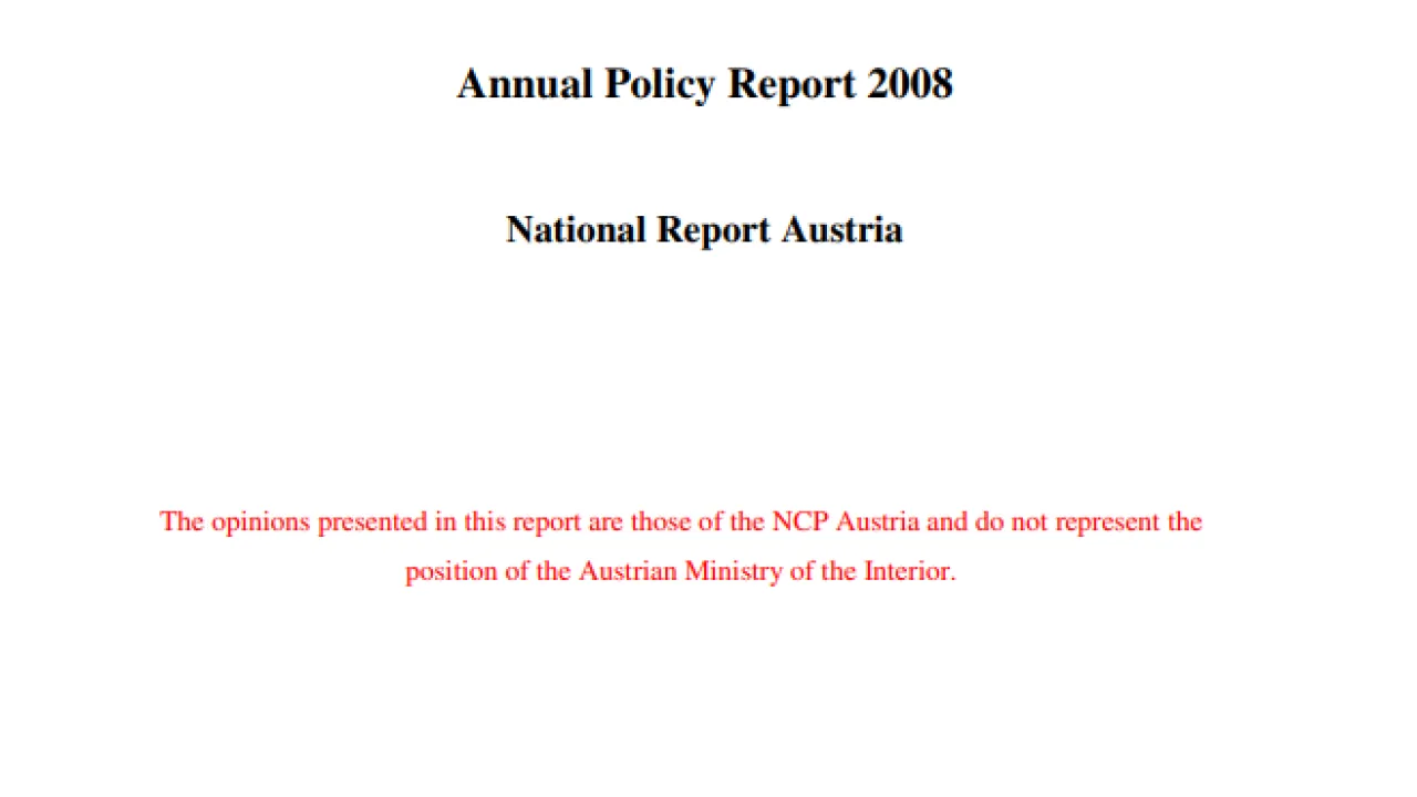 This Policy Report gives an overview of the key political debates and developments in the field of migration and asylum in Austria in 2008. One of the main policy and legislative developments was the debate on the criteria for granting humanitarian residence which led to a request by the Constitutional Court to specify the criteria in the Settlement and Residence Law. Another important development was the establishment of a National Action Plan on Trafficking in Human Beings. The most important institutional development constituted the establishment of the Asylum Court which – as of 1 July 2008 – replaced the Independent Federal Asylum Senate as the second instance asylum authority.