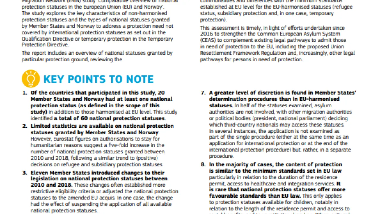 Comparative overview of national protection statuses in the EU and Norway Type Inform Category EU-Level Year 2020 Download (EN) Share Facebook X LinkedIn WhatsApp Email The corresponding Ad-Hoc Queries to this EMN Inform can be found here. Additional documents EMN Flash (EN)