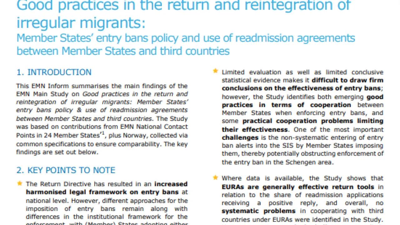 Good practices in the return and reintegration of irregular migrants: Member States’ entry bans policy and use of readmission agreements between Member States and third countries
