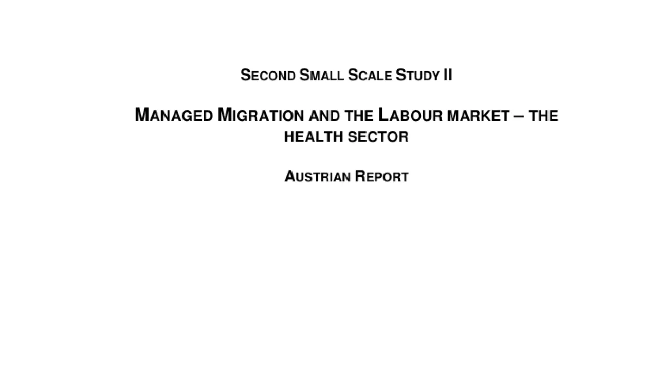 The study examines the Austrian approach towards migration management in the health sector. It also includes an examination of long-term care and nursing needs, especially for the elderly. More precisely, the study provides an overview of the Austrian health care sector and the main health care services provided, the Austrian migration policy with regard to the health care sector, available data on the employment of migrants in health care professions, and legal provisions concerning education and training for health care professions.