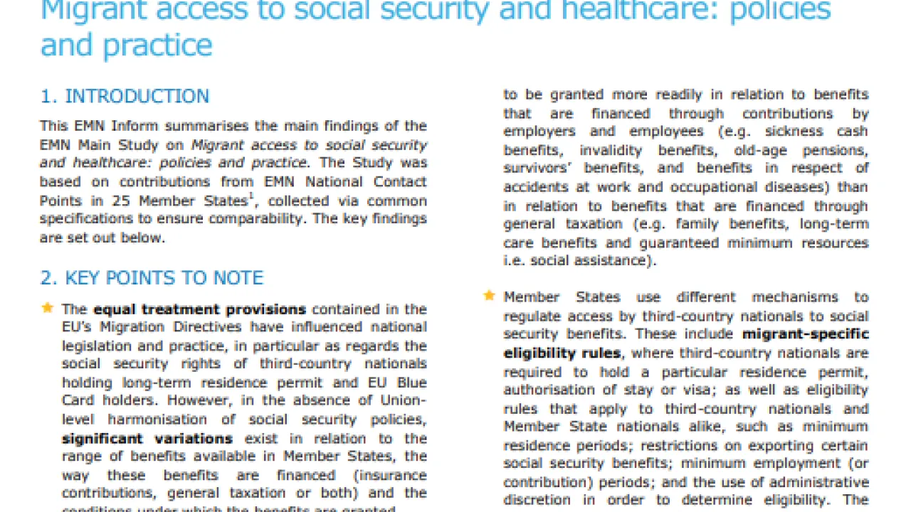 Migrant access to social security and healthcare: policies and practice Type Inform Category EU-Level Year 2014 Download (EN) Download (DE) Share Facebook X LinkedIn WhatsApp Email The corresponding study to this EMN Inform can be found here.