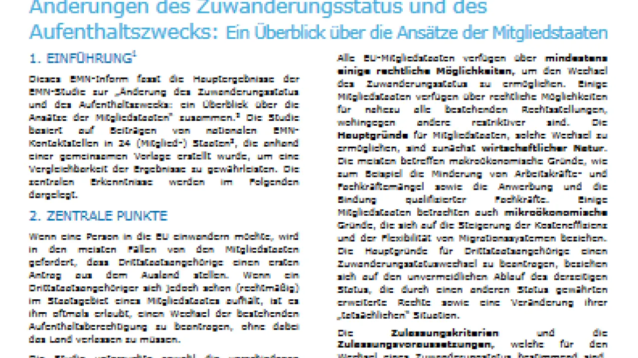Änderungen des Zuwanderungsstatus und des Aufenthaltszwecks: Ein Überblick über die Ansätze der Mitgliedstaaten Typ Inform Kategorie EU-weit Jahr 2016 Download (EN) Download (DE) Teilen Facebook X LinkedIn WhatsApp Email Die entsprechende Studie zu diesem EMN Inform finden Sie hier.