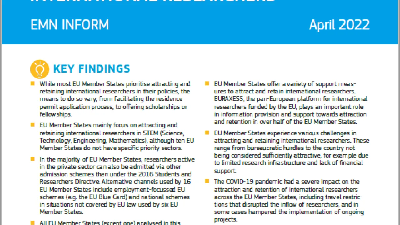 Attracting and Retaining International Researchers Typ Inform Kategorie EU-weit Jahr 2023 Download (EN) Teilen Facebook X LinkedIn WhatsApp Email Die entsprechenden Ad-hoc-Anfragen zu diesem EMN Inform finden Sie hier.