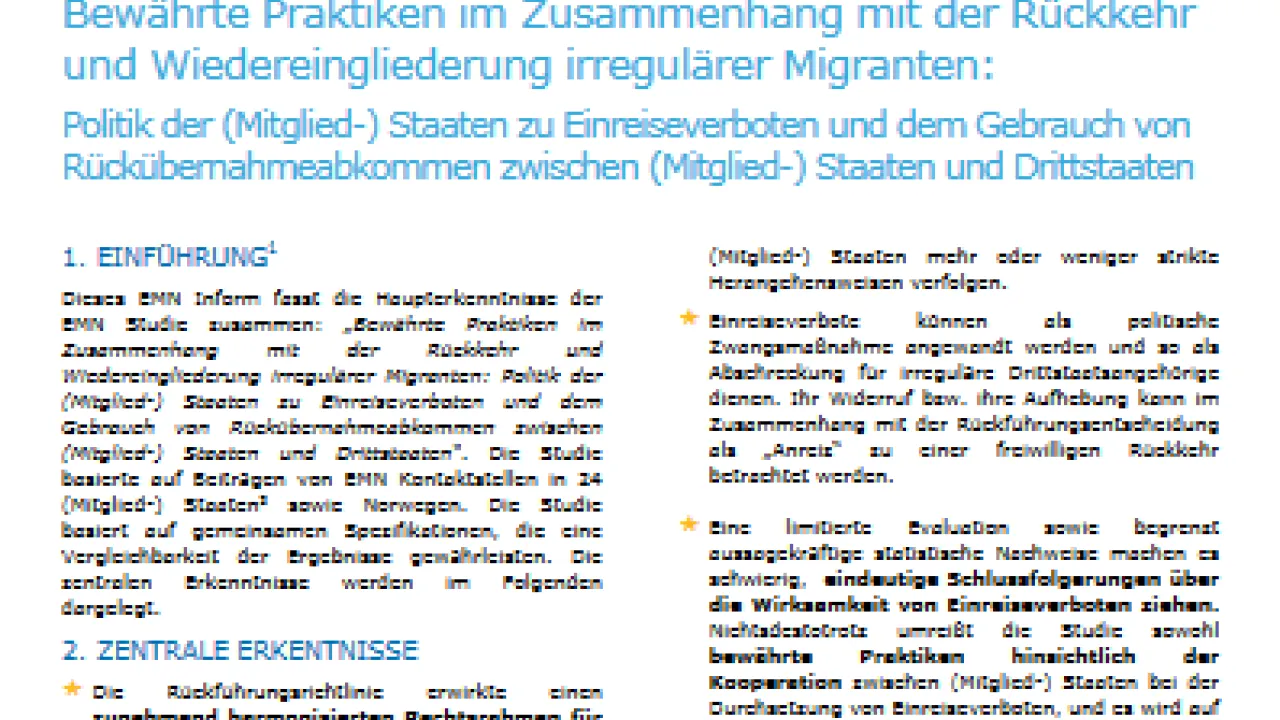 Bewährte Praktiken im Zusammenhang mit der Rückkehr und Wiedereingliederung irregulärer Migranten: Politik der (Mitglied-) Staaten zu Einreiseverboten und dem Gebrauch von Rückübernahmeabkommen zwischen (Mitglied-) Staaten und Drittstaaten