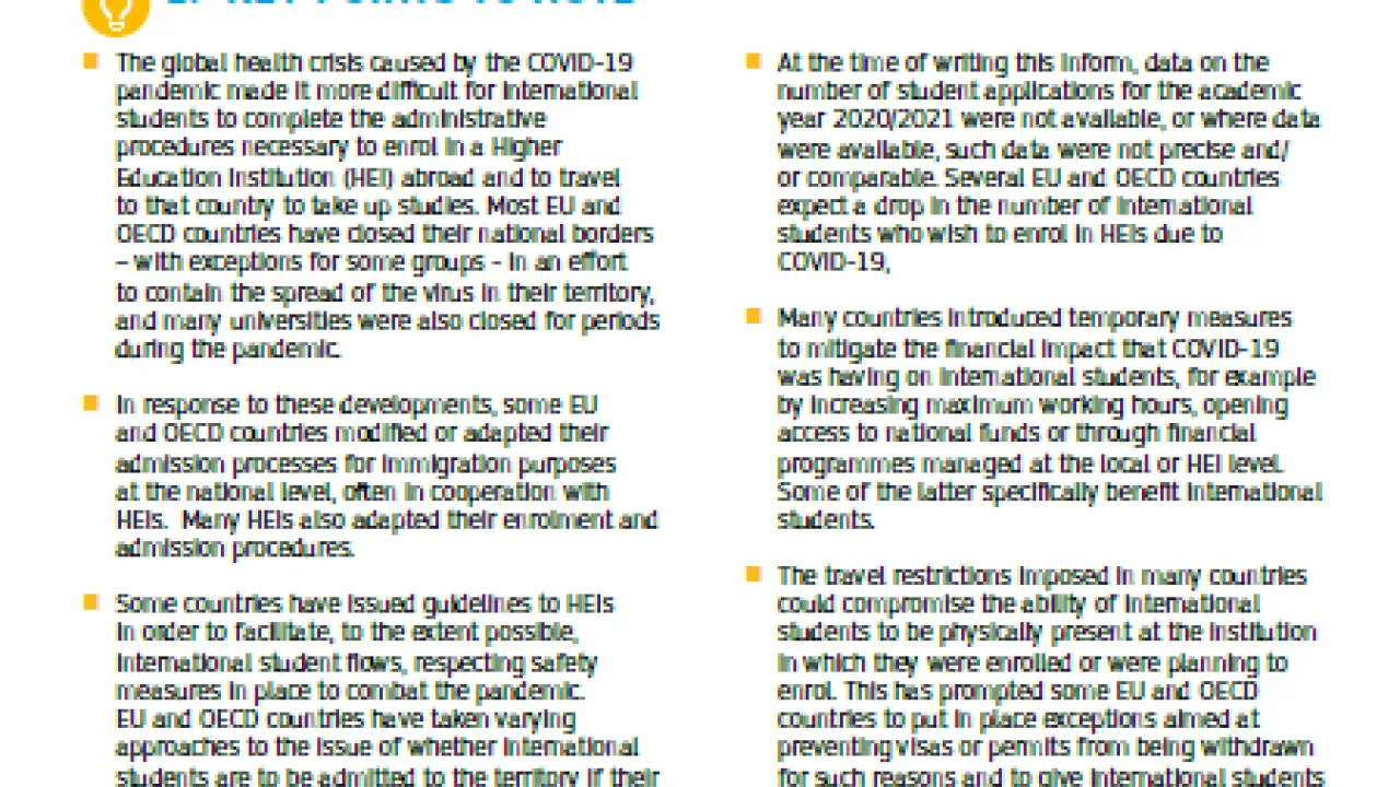 COVID-19 Pandemie: Auswirkungen auf internationale Studierende Typ Inform Kategorie EU-weit Jahr 2020 Download (EN) Teilen Facebook X LinkedIn WhatsApp Email Die entsprechenden Ad-hoc-Anfragen zu diesem EMN Inform finden Sie hier.