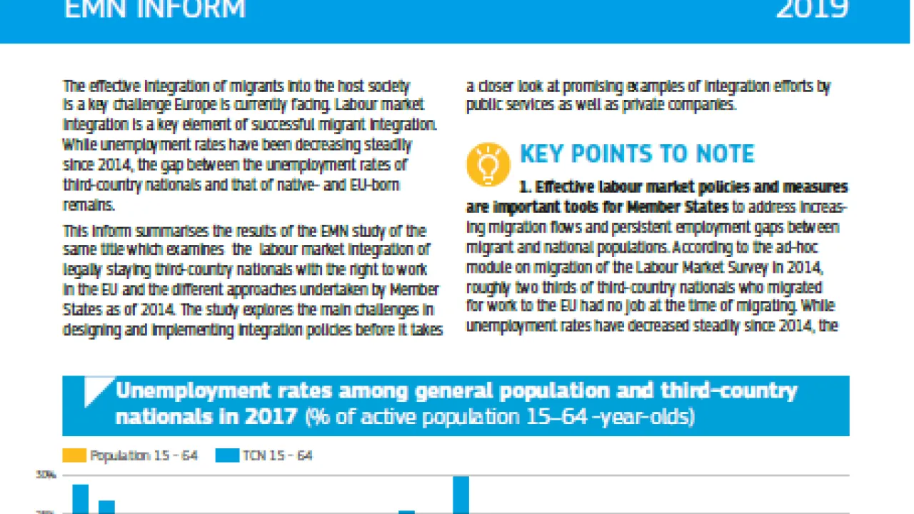 Die Arbeitsmarktintegration von Drittstaatsangehörigen in EU-Mitgliedstaaten Typ Inform Kategorie EU-weit Jahr 2019 Download (EN) Teilen Facebook X LinkedIn WhatsApp Email Die entsprechende Studie zu diesem EMN Inform finden Sie hier. Zusatzdokumente EMN Flash (EN)
