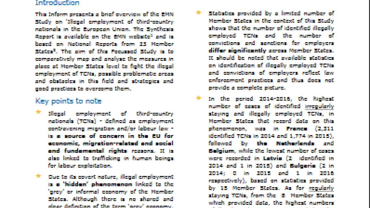 Illegale Beschäftigung von Drittstaatsangehörigen in der Europäischen Union Typ Inform Kategorie EU-weit Jahr 2018 Download (EN) Teilen Facebook X LinkedIn WhatsApp Email Die entsprechende Studie zu diesem EMN Inform finden Sie hier.
