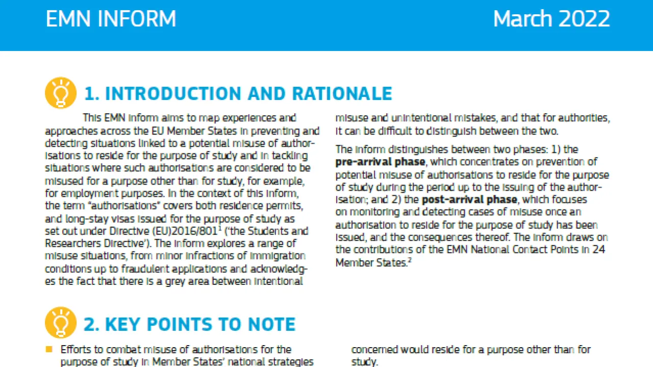 Preventing, Detecting and Tackling Situations where Authorisations to Reside in the EU for the Purpose of Study are Misused for other Purposes