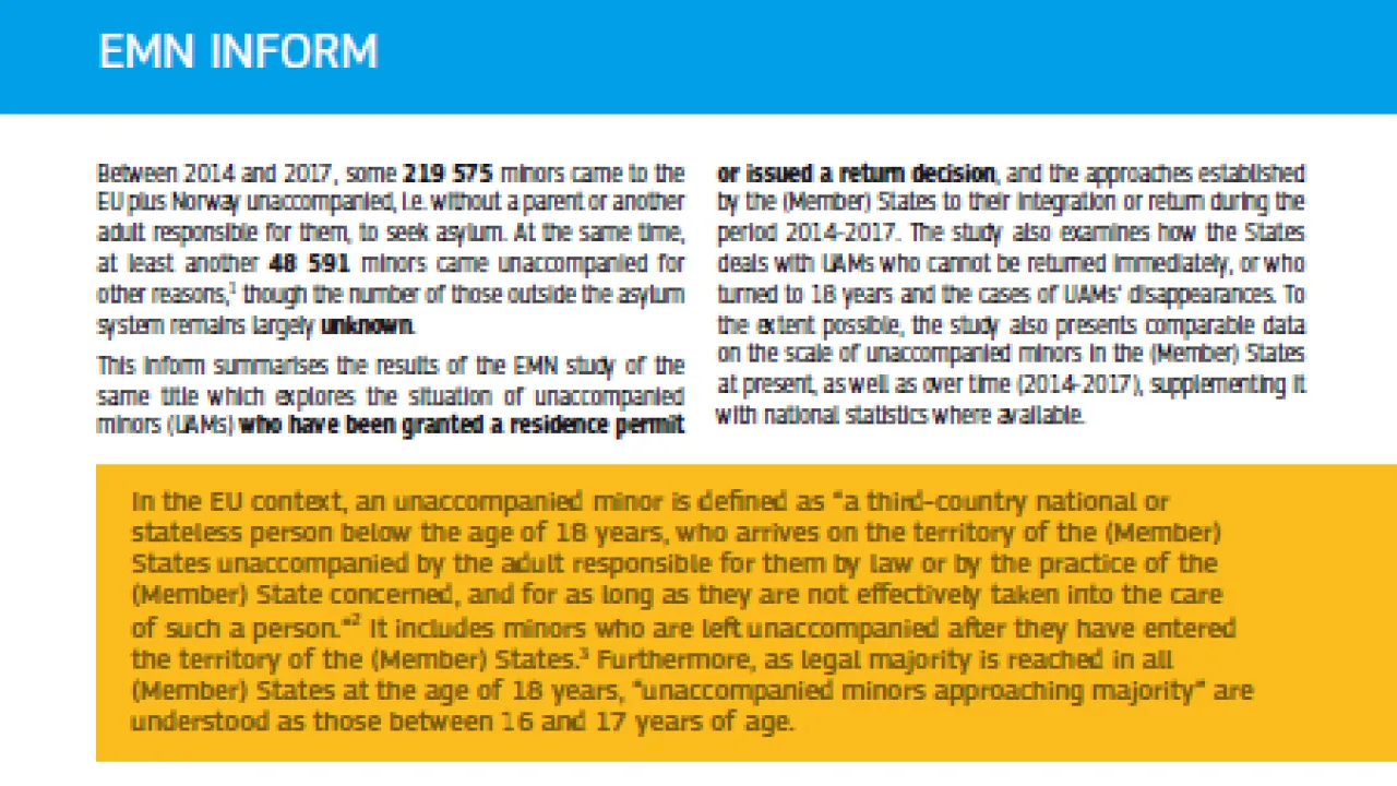 Unbegleitete Minderjährige nach Feststellung des Aufenthaltsstatus Typ Inform Kategorie EU-weit Jahr 2018 Download (EN) Download (DE) Teilen Facebook X LinkedIn WhatsApp Email Die entsprechende Studie zu diesem EMN Inform finden Sie hier. Zusatzdokumente EMN Flash (EN)