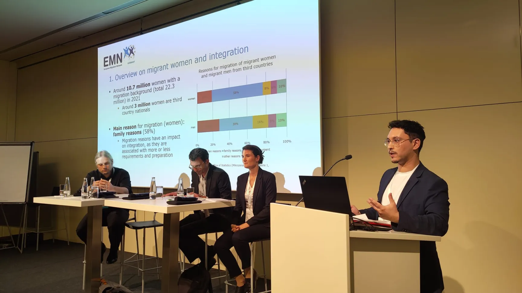 Eine vergleichende Studie über die Integration von Migrantinnen, die vom Europäischen Migrationsnetzwerk (EMN) im Jahr 2021 durchgeführt wurde, ergab, dass von 23 Mitgliedstaaten 15 das Gender-Mainstreaming in ihrer nationalen Integrationspolitik umsetzen, acht davon verfolgen einen dualen Ansatz (d. h. sie kombinieren Gender-Mainstreaming mit gezielten Maßnahmen). Auf der Grundlage dieser Studie wurden im Workshop die Fälle von drei verschiedenen EU-Mitgliedstaaten (Österreich, Deutschland und Luxemburg) vorgestellt und die politischen Ansätze zur Integration von Migrantinnen verglichen.