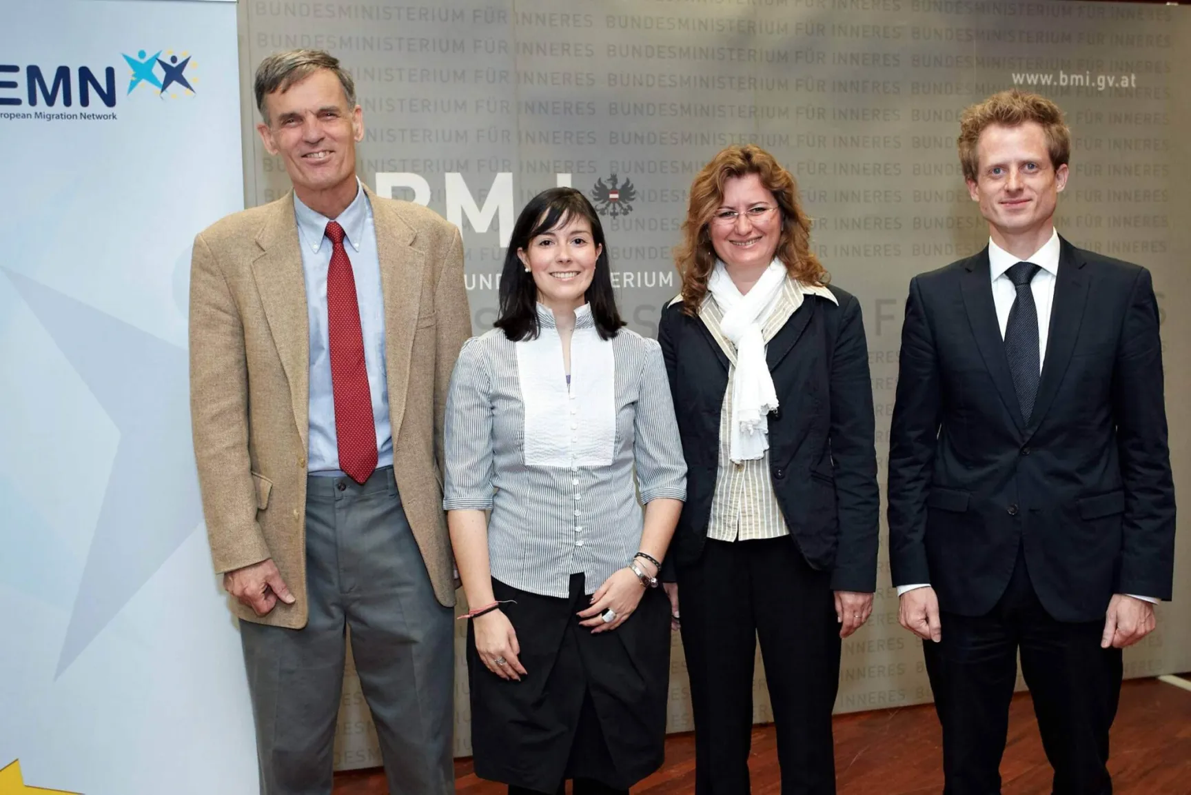 Die Internationale Organisation für Migration in Wien (IOM Wien) und der Nationale Kontaktpunkt Österreich im Europäischen Migrationsnetzwerk stellten sich mit ihren Tätigkeiten beim Bundesministerium für Inneres vor. Im ersten Teil der Informationsveranstaltung wurden die Abteilungen der IOM Wien von Andreas Halbach (Direktor der IOM Wien) vorgestellt. Diese sind: Assistierte Freiwillige Rückkehr und Reintegration, Kampf gegen Menschenhandel, Operations, Grenzmanagement und Projektentwicklung. Der zweite Teil der Vorstellung widmete sich den Zielen und Aufgaben des Europäischen Migrationsnetzwerkes. Dr.in Katerina Kratzmann (Forschungsleiterin) präsentierte die aktuellen politischen Rahmenbedingungen, den Einflussbereich des Netzwerkes und zukünftige Entwicklungen wie beispielsweise das Informationsaustauschsystem. Mag.a Mária Temesvári, juristische Beraterin am Nationalen Kontaktpunkt Österreich, erläuterte die Ad-Hoc Anfragen (ein Instrument um rasch Informationen aus den europäischen Mitgliedstaaten zu gewinnen). Weiters stellte Mag.a Elisabeth Petzl, wissenschaftliche Mitarbeiterin des Nationalen Kontaktpunkt Österreich, die EMN Studien vor. Anna Dederichs, MA, wissenschaftliche Mitarbeiterin des Nationalen Kontaktpunktes Luxemburg, präsentierte abschließend das EMN Glossar zu Migration und Asyl, welches im Februar 2010 in einer ersten Version publiziert wurde.