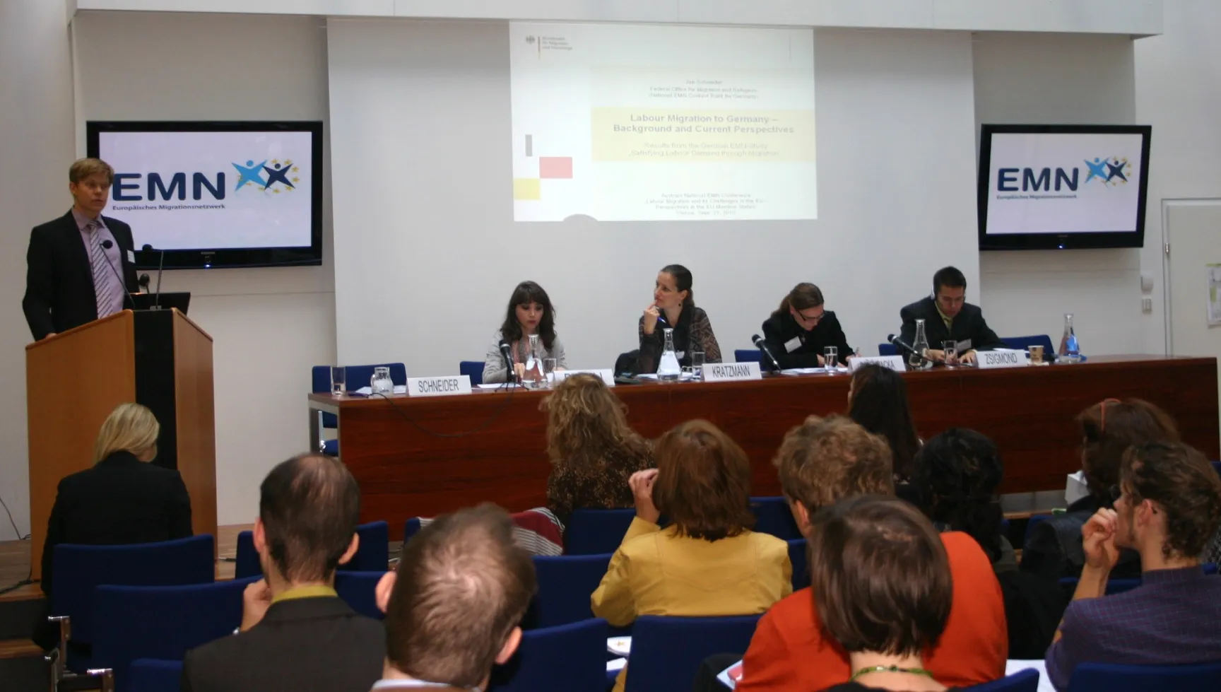 Im Rahmen der Konferenz „Herausforderungen der Arbeitskräftenachfrage und Migrationsentwicklungen in der Europäischen Union – Perspektiven der EU Mitgliedsstaaten“ wurde ein Überblick über die zentralen Erkenntnisse der EMN Studie „Satisfying labour demand through migration“ geboten. Ein Vergleich von Arbeitsmigrationen in der EU sowie die österreichische Situation wurden jeweils in einem Eröffnungsvortrag dargestellt. Anschließend wurden nationale Perspektiven elaboriet, und den Abschluss der Konferenz bildete eine Podiumsdiskussion, bei welcher der aktuelle Bedarf des österreichischen Arbeitsmarktes sowie die Rolle von MigrantInnen auf diesem, zur Diskussion standen.